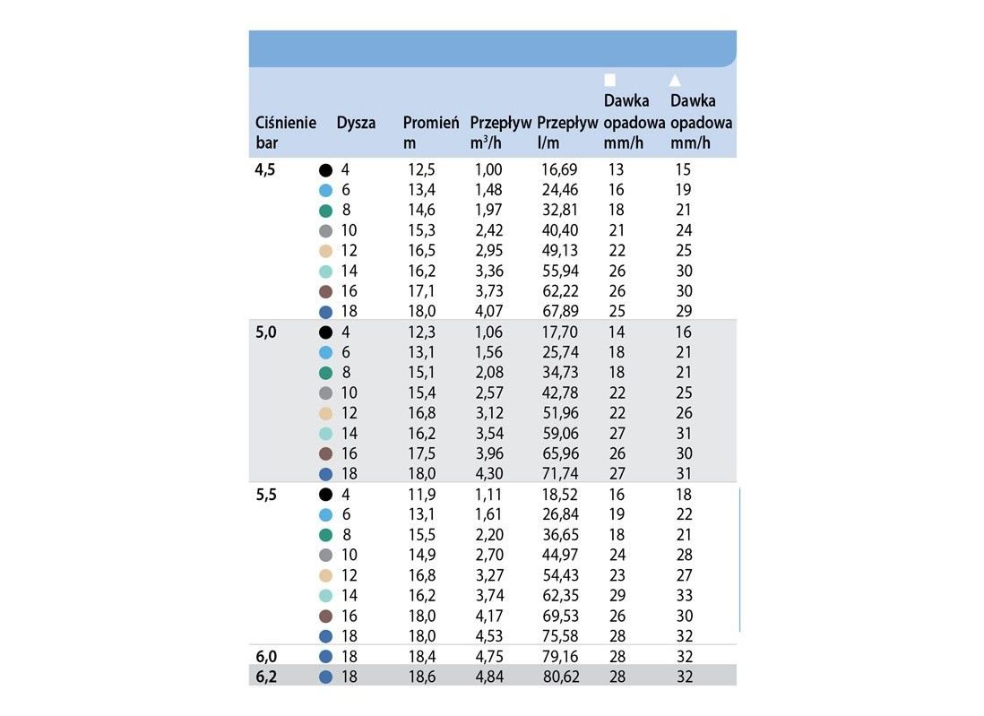 – Zraszacz sektorowy – możliwość regulacji od 40 do 360° – praca „tam i z powrotem”