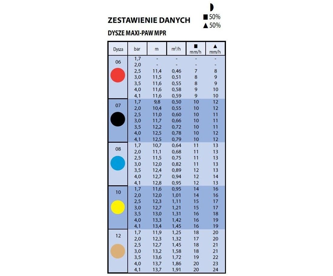• 5 rodzajów dysz  typu MPR.