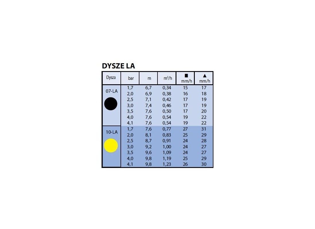 Dysze LA: 07-LA (czarna), 10-LA (żółta).